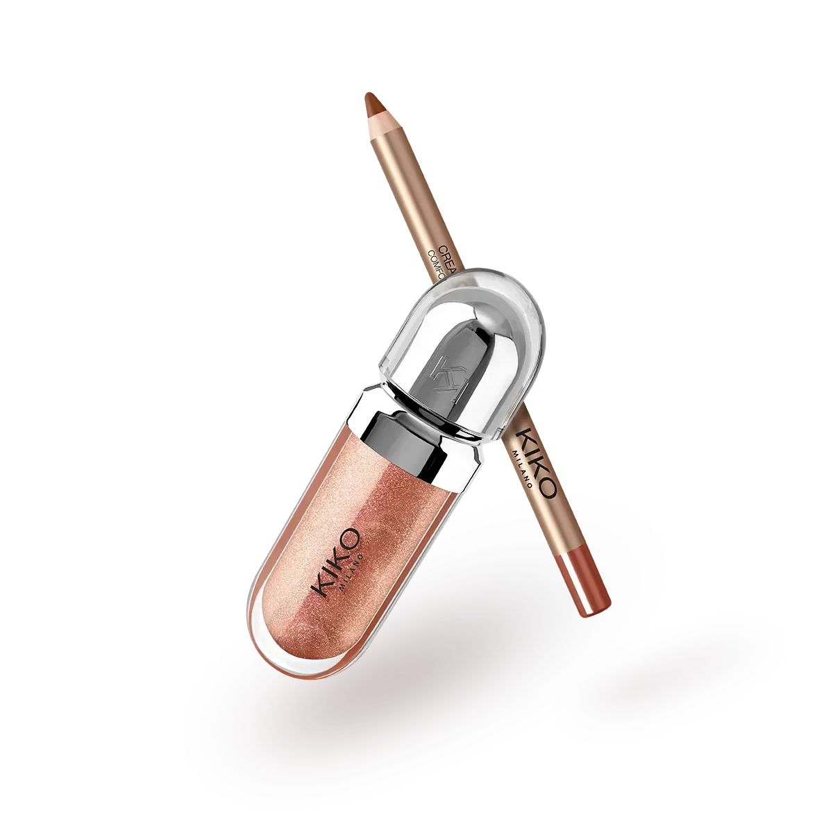 Conjunto de oferta para lábios composto por um batom hidratante* combinado com um lápis de lábios cremoso, numa preciosa caixa de oferta.